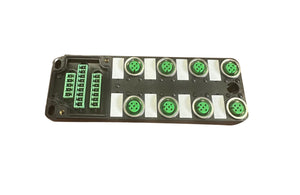 8-port dual-channel M12 hub with built-in PNP signal indicator. PCB pluggable terminal block outlets with plug set